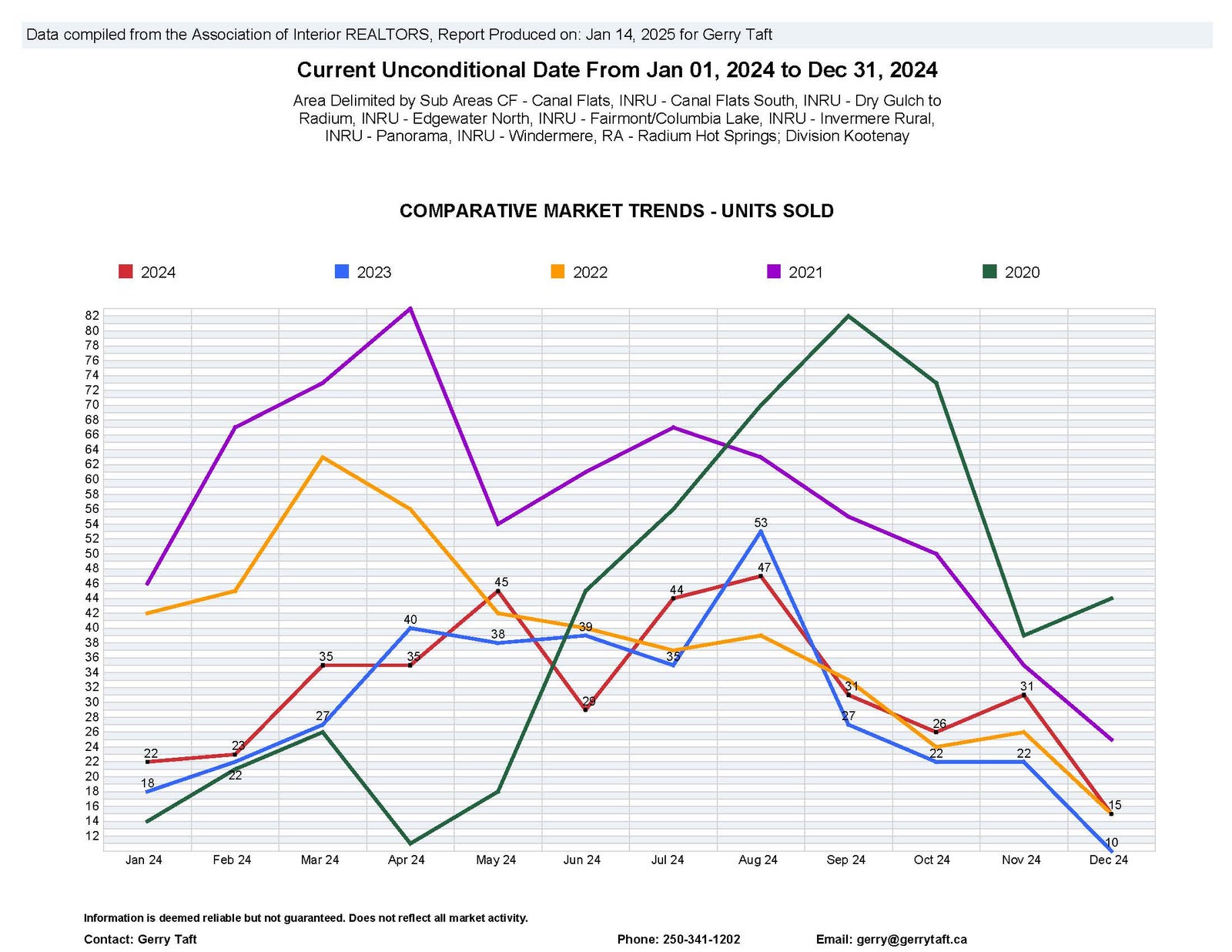 September, October, and November of 2024 were surprisingly busy considering how slow/choppy 2024 had been for sales. The stats may not be completely accurate as myself and likely other agents had a few expired listings sell in the fall. A number of listings that had been sitting on the market sold, and newer listings also sold. Although there were a steady flow of new listings through the fall of 2024, but a lot of these were for condos at Panorama and building lots (weaker demand) and not for single family homes in Invermere or Windermere (where there is strong pent up demand). December 2024 was very slow, but not as slow as December 2023 which was one of the slowest months for sales on record for many many years.