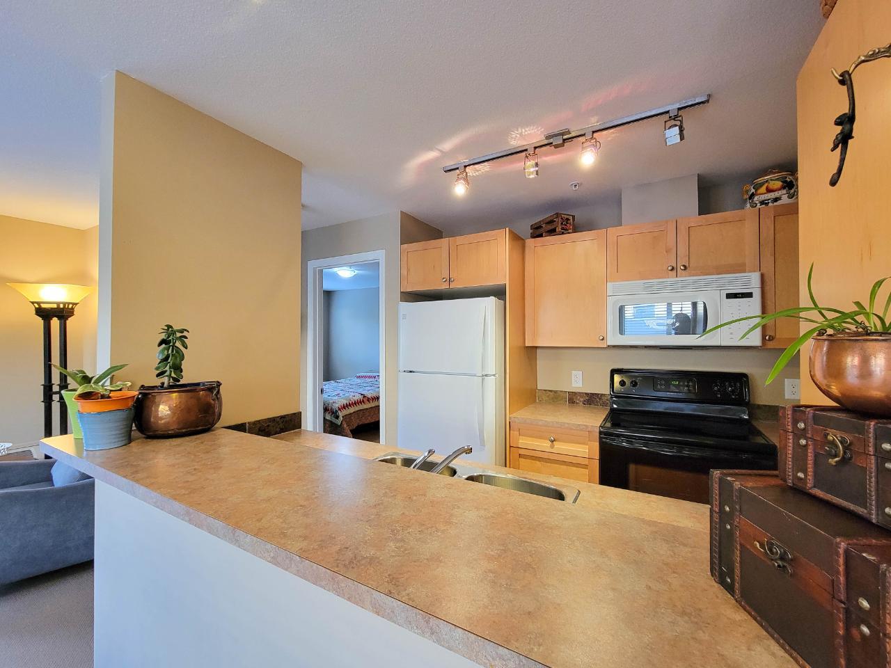 Bright, Clean, & Comfortable! This two bedroom and two full bath second floor condo has a large covered south facing patio with some nice views of the Rocky Mountains and the perfect amount of sun! Located in the quiet 48 unit complex 'The Aspen'. The unit has very low strata fees of $309.40 (which include electricity, water, and sewer), and the strata has a healthy reserve fund balance. Secured underground parking with a storage cage allows you to keep your car out of the snow and gives you some extra storage. The unit is perfect for year round living, or to use as a part time escape from the city, or as a long term rental investment. The strata says short term rentals are not permitted. Great value for the price, check out the 3D tour and snap up this beauty, before someone else does! (id:4069)