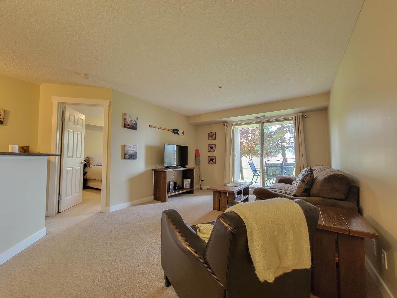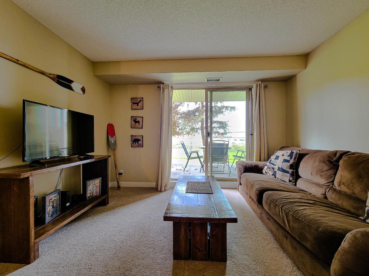 INVEST IN INVERMERE! GREAT VALUE! Two bedroom two bath condo unit being sold furnished and turnkey! Ready for personal enjoyment, or income generation, or a bit of both! Ground floor and backing onto a green strip of grass and with a huge balcony- this unit is ideal for someone with furry friends- bring the dog and the kids! The unit is in great shape, although not the most modern and no lake views- it is a solid choice to jump into a super convenient location- no immediate renovations are needed! Lake Windermere Pointe features swimming pool, two hot tubs, steps from James Chabot beach and close to downtown Invermere. (id:4069)