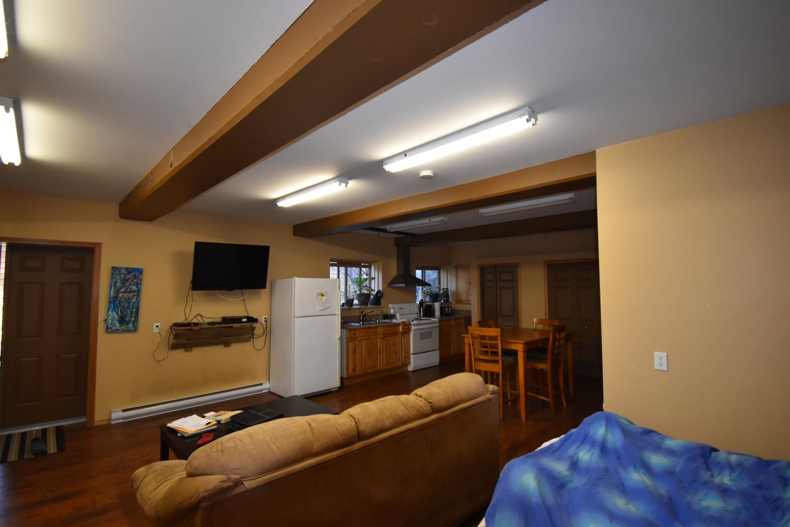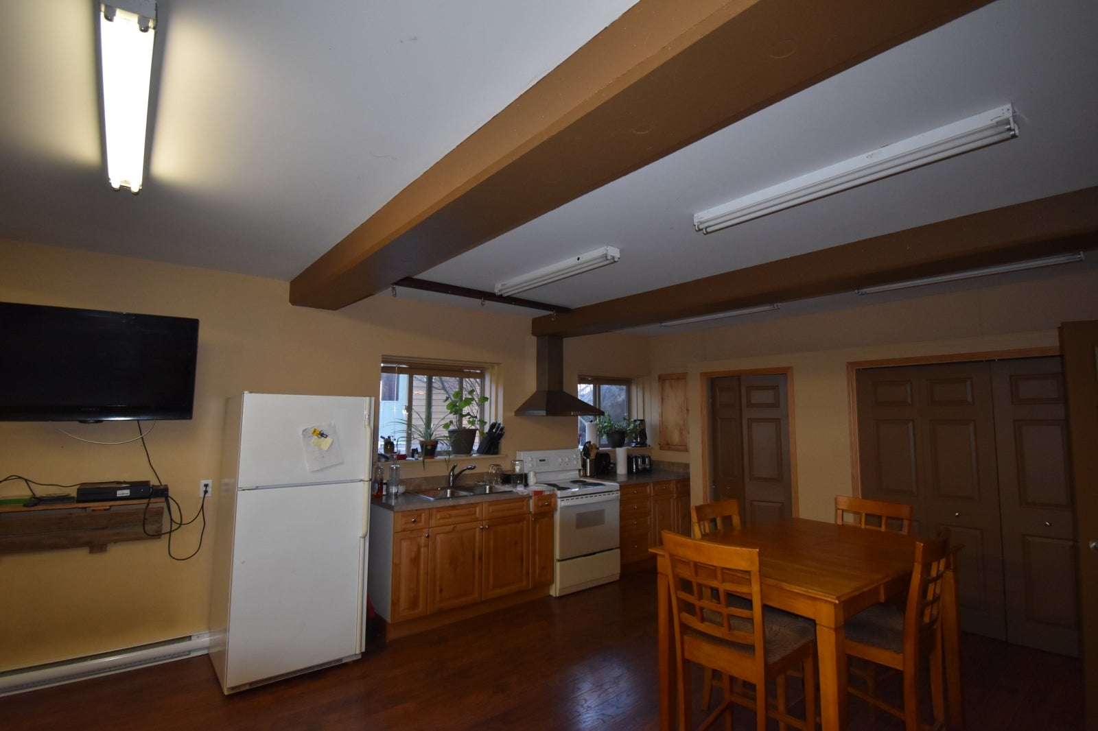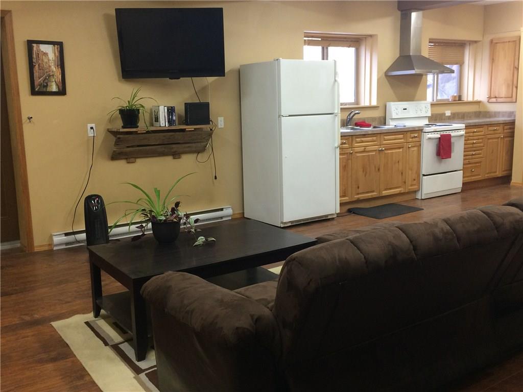 The lower level of the house includes a very nicely finished large 2 bedroom suite with a great kitchen, cozy wood stove, large bathroom with full tub. Walkout, bright, private access, gear storage porch and private deck!